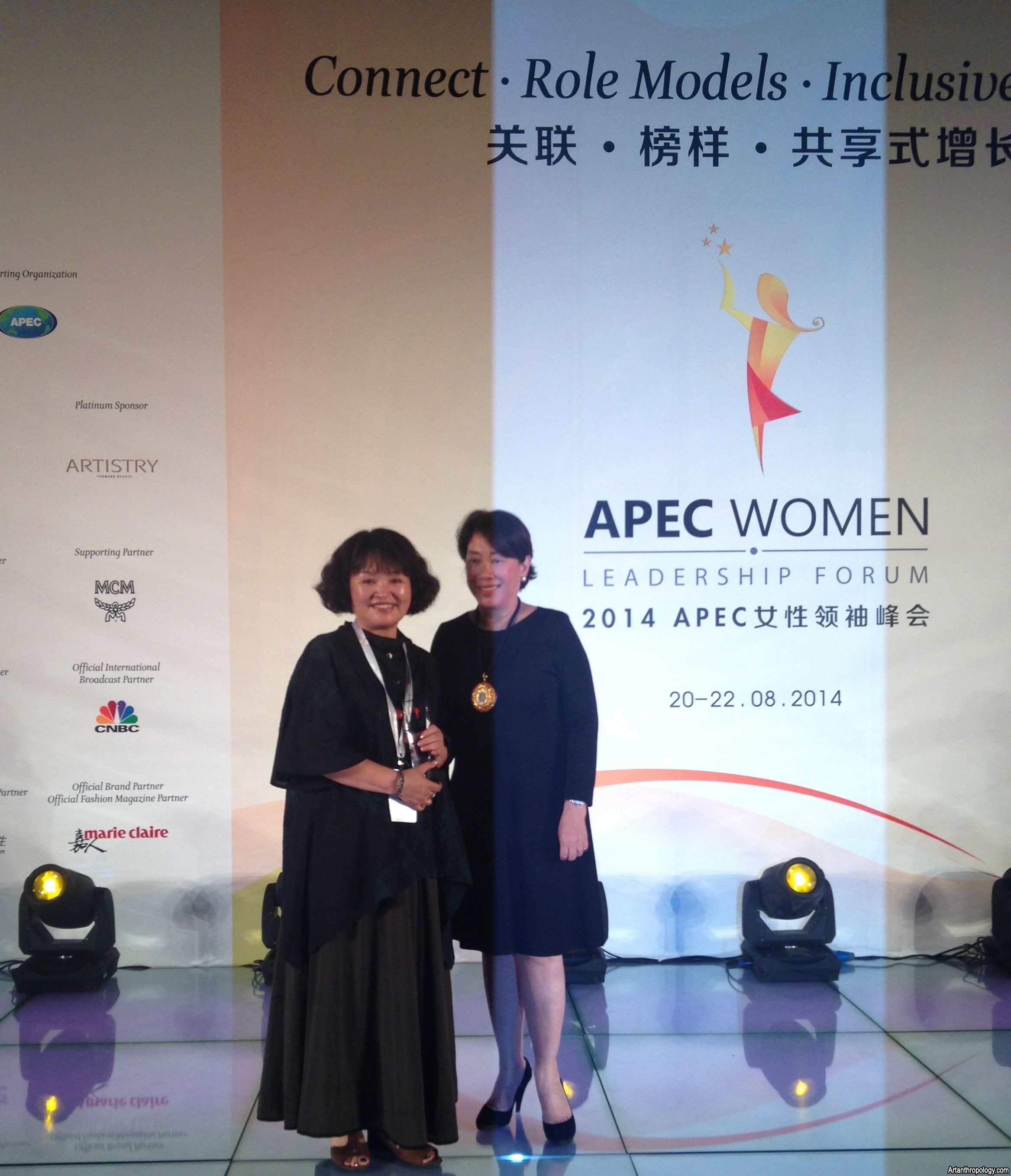 2014APEC女性领袖峰会于8月20日—22日在京举行,中国艺术研究院艺术人类学研究所所长、中国艺术人类学会会长方李莉研究员,在此次会议中,荣获“2014APEC最杰出女性奖”!此次峰会汇集了世界政治、经济、思想、文艺界中最具影响力的女性领袖。方李莉是迄今为止唯一获得此项殊荣的亚太学术界女性!