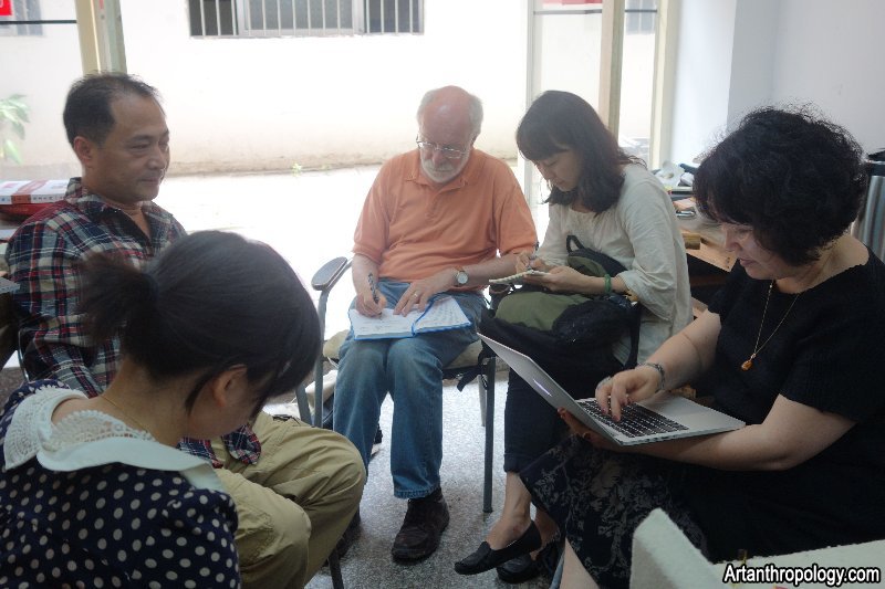 莱顿教授作为国家外专局资助的高端专家,受聘在中国艺术研究院艺术人类学研究所工作三年,在这三年中他每年至少花二个月的时间,在研究生院和所里担任教学与研究工作。5月初至5月17日,他花了两周的时间在中国艺术研究院研究生院,做了六次讲座,几乎是他在英国半个学期的教程,他打算9月份再来接着讲完一个学期的教程。不仅是教学,而且还亲自带着我们的学生做田野工作。这样,就使我们的学生即使在中国也能接受一套非常完整的英式艺术人类学的教育,对于老师来说,也是一个非常好的教学观摩,通过学习莱顿先生的教学方式和做田野的方式,研究所的学者们也从中学习不少。