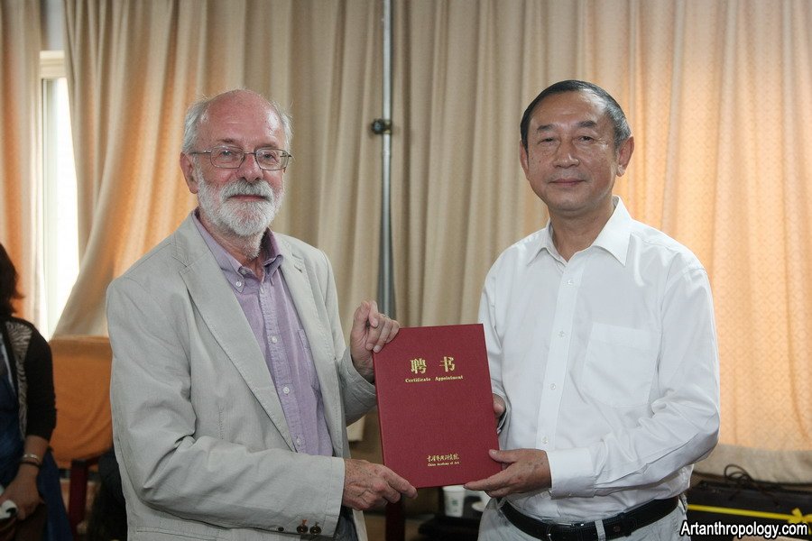 首先,王能宪副院长代表中国艺术研究院向莱顿先生颁发了客座研究员聘书,并发表了热情洋溢的致辞。他说:“我代表中国艺术研究院向莱顿先生的到来表示最热烈的欢迎,莱顿先生是享誉国际学界的大学者,这次在我院的积极申请下,外专局批准并提供经费邀请到莱顿先生来我院进行为期三年的合作交流,对我院学术的发展和研究生培养是一件好事,我相信莱顿先生的到来,会对我院的学术研究和研究生教育作出很大的贡献。这次莱顿先生还与艺术人类学研究所合作,共同到景德镇进行陶瓷手工艺的研究工作,我也预祝课题能够取得丰硕的研究成果。”