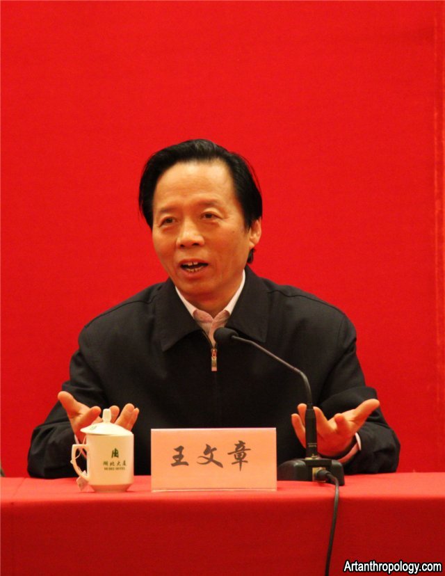 王文章院长在闭幕式致辞中谈到,通过2014年艺术人类学国际学术研讨会可以看出,中国艺术人类学学会发展良好,国内艺术人类学研究取得了很大进展。他指出,学术研究要从实践中概括理论,然后用理论来指导实践,应该把握好理论研究的方式,并且坚持正确的方向去实践。本次研讨会中对非遗保护工作进行了很多分析,提出了很多问题。王文章院长提到,对于这些问题,今后需要继续在实践中考察,在考察基础上进行理论研究,为中国乃至世界艺术人类学的发展,为当前的文化艺术的发展积极贡献力量。王文章院长还谈到了习近平总书记在今年10月15日召开的文艺工作座谈会,他指出,座谈会涉及到国家文化在新时期的发展,文化的繁荣需要全体文化工作者的共同努力,艺术人类学研究者应该为中国文化艺术的发展做出新的贡献和努力。王文章院长对中国艺术人类学学会成立以来所开展的一系列学术工作进行了充分肯定,鼓励学会进一步推动国内艺术人类学的发展。