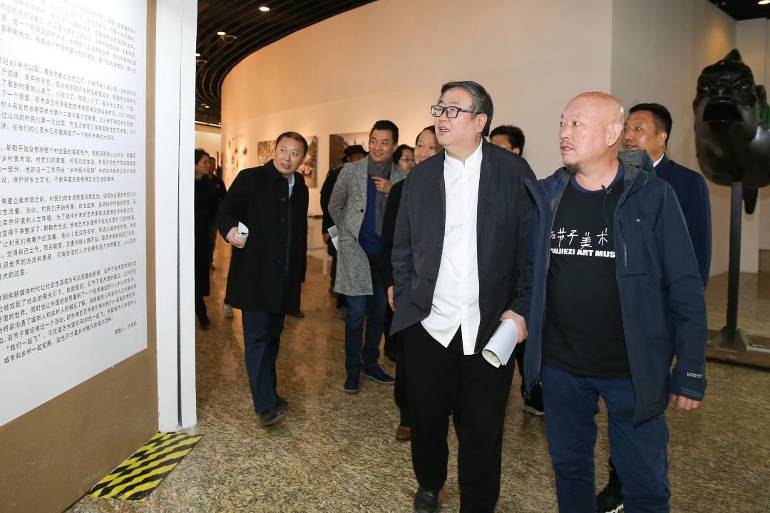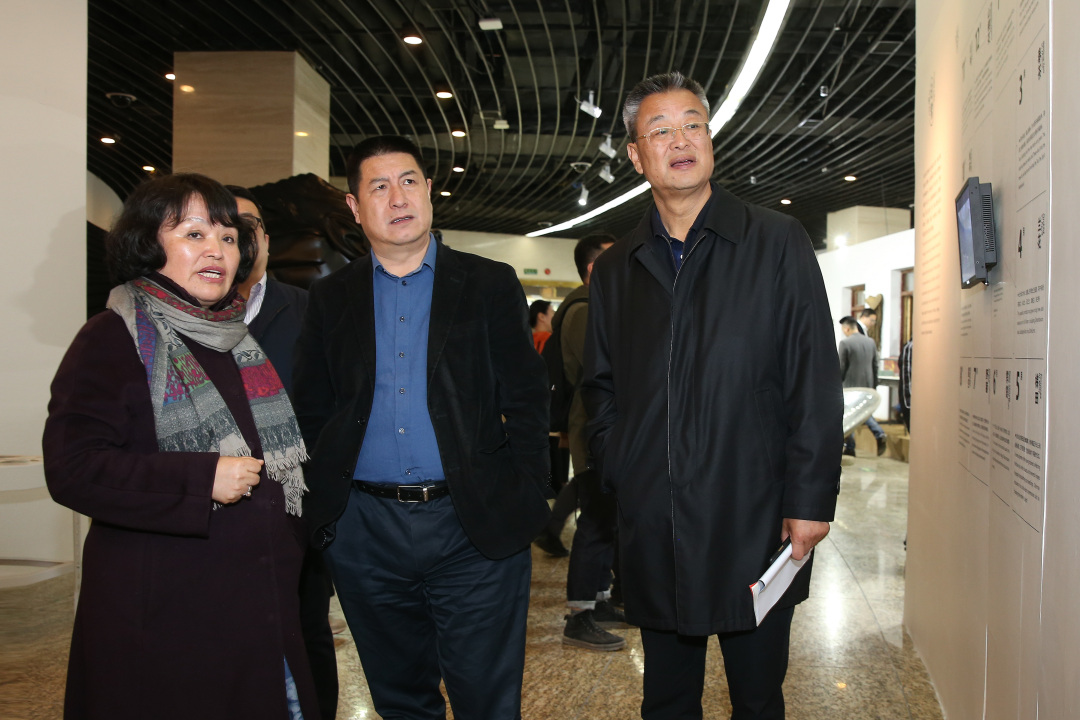 中国艺术研究院院长韩子勇、副院长王福州、副研究员安丽哲在展厅参观