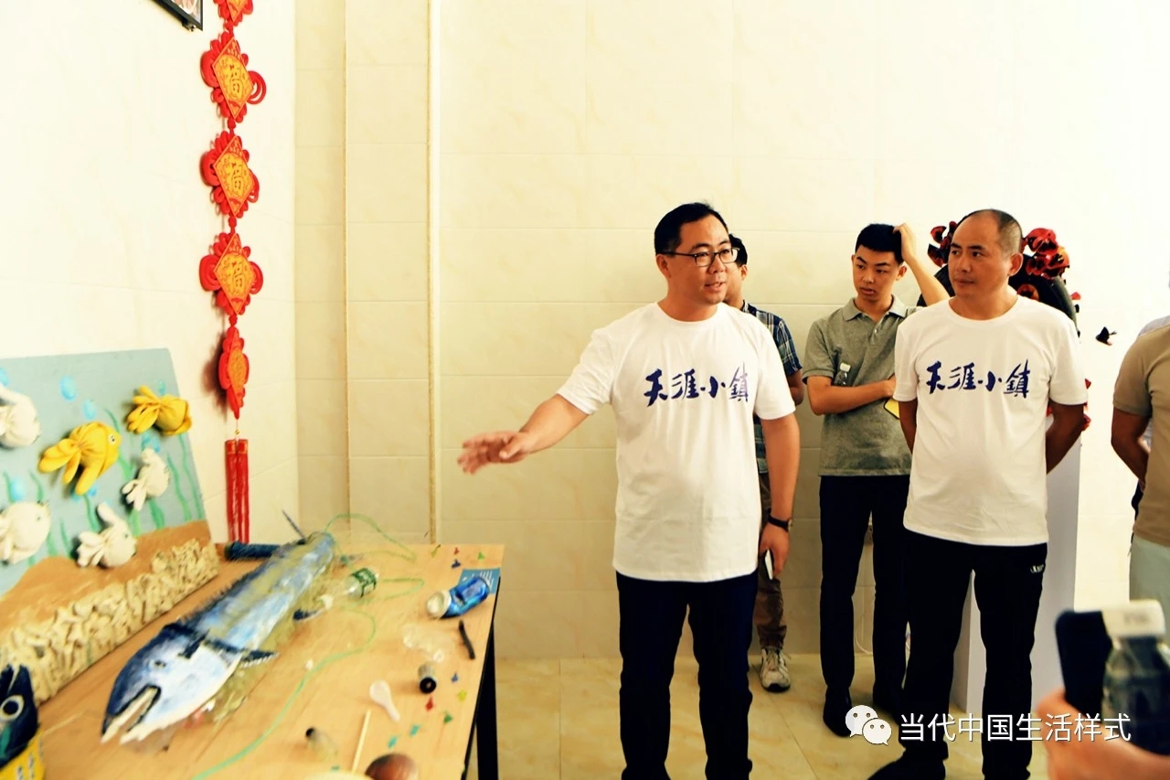 中国艺术研究院艺术学研究所副研究员王永健博士在展览现场为嘉宾介绍他与当地渔民陈四弟用回收垃圾材料联合创作的作品《马鲛鱼》