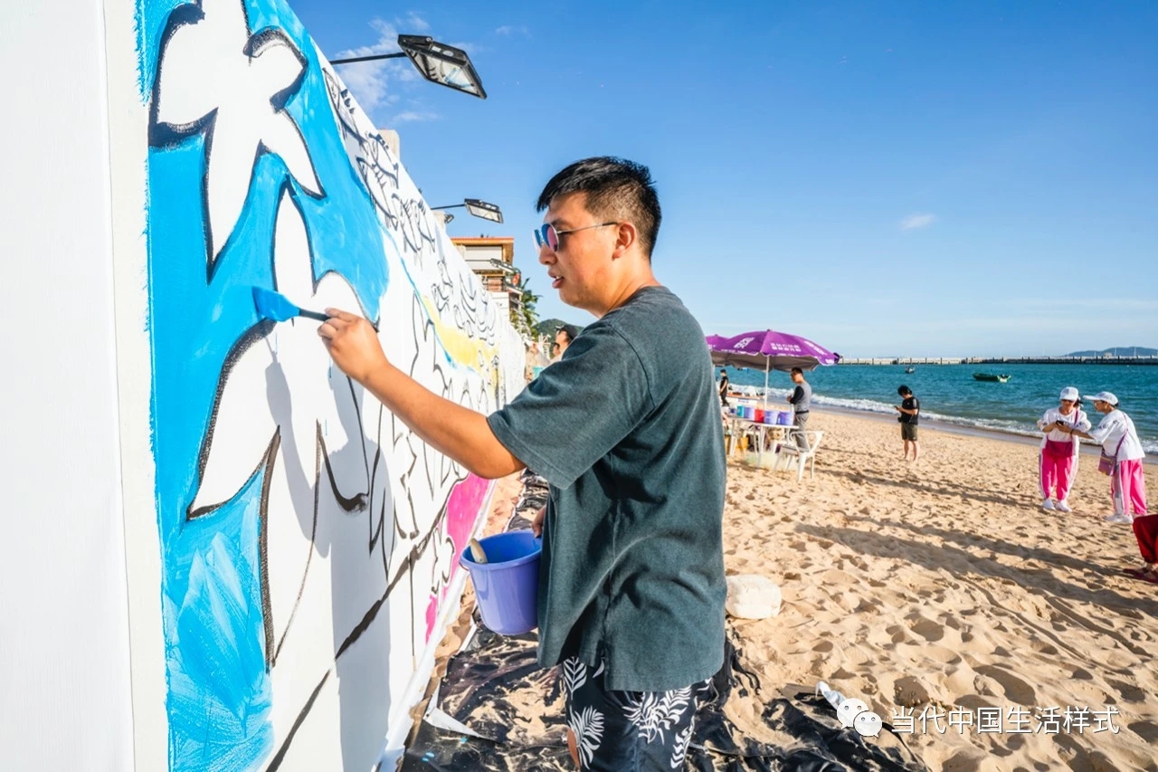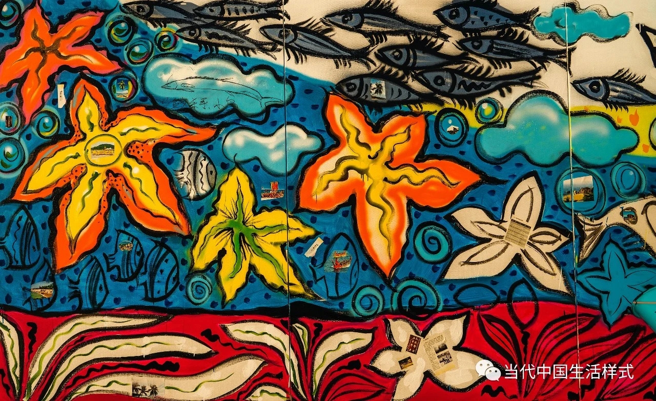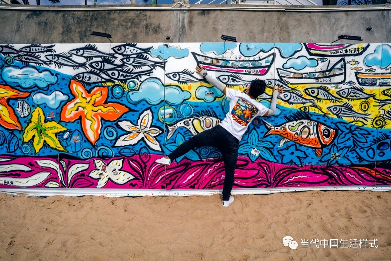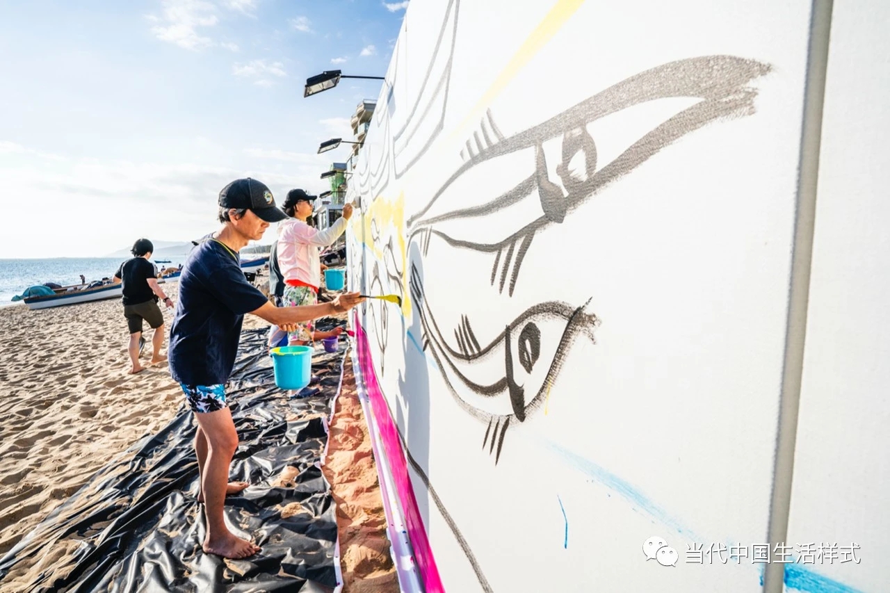 天涯小镇的居民与艺术家共同涂鸦
