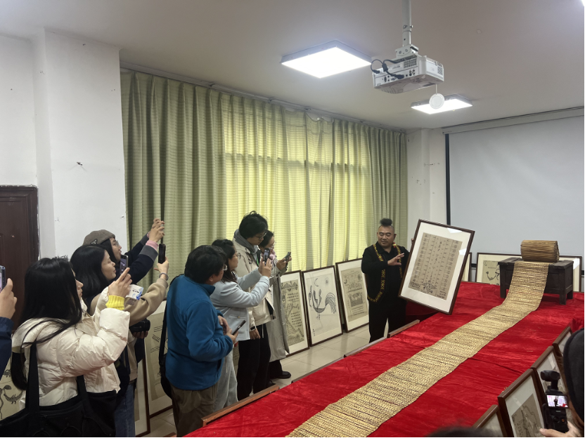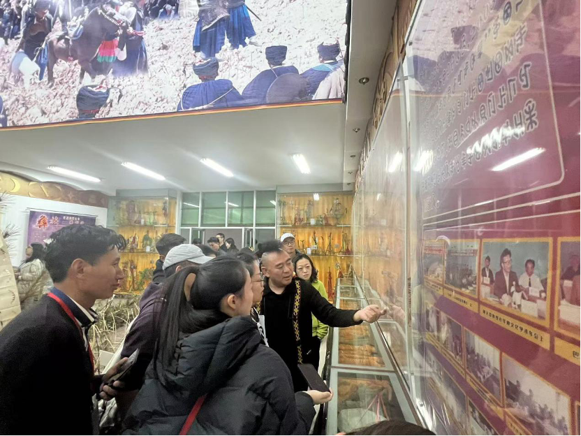 下午15:00全体成员前往美姑文化馆进行参观学习。美姑文化馆是当地文化传承与发展的关键枢纽,馆内陈列着诸多彝族特色手工艺品,毕摩绘画书法、传统彝族服饰、巧夺天工的漆器等,无不彰显着深厚的民族文化底蕴。