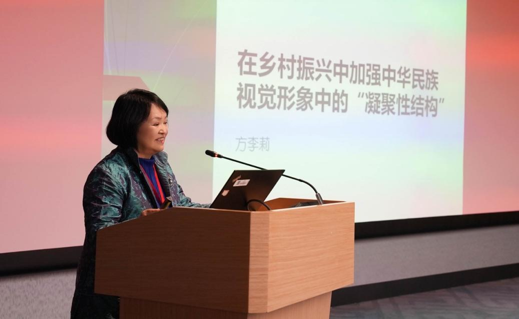 东南大学特聘首席教授、艺术人类学与社会学研究所所长、中华民族视觉形象国家研究基地首席专家兼副主任方李莉教授应邀作主题发言,报告题为“在乡村振兴中加强中华民族视觉形象中的凝聚性结构”。她指出,中国传统宇宙观是中华民族视觉形象的深层根基,也是乡村振兴中重建文化认同与凝聚精神纽带的关键,应“从建筑与空间入手”,在当代乡村建设中系统理解和激活这一宇宙观背后的文化逻辑。