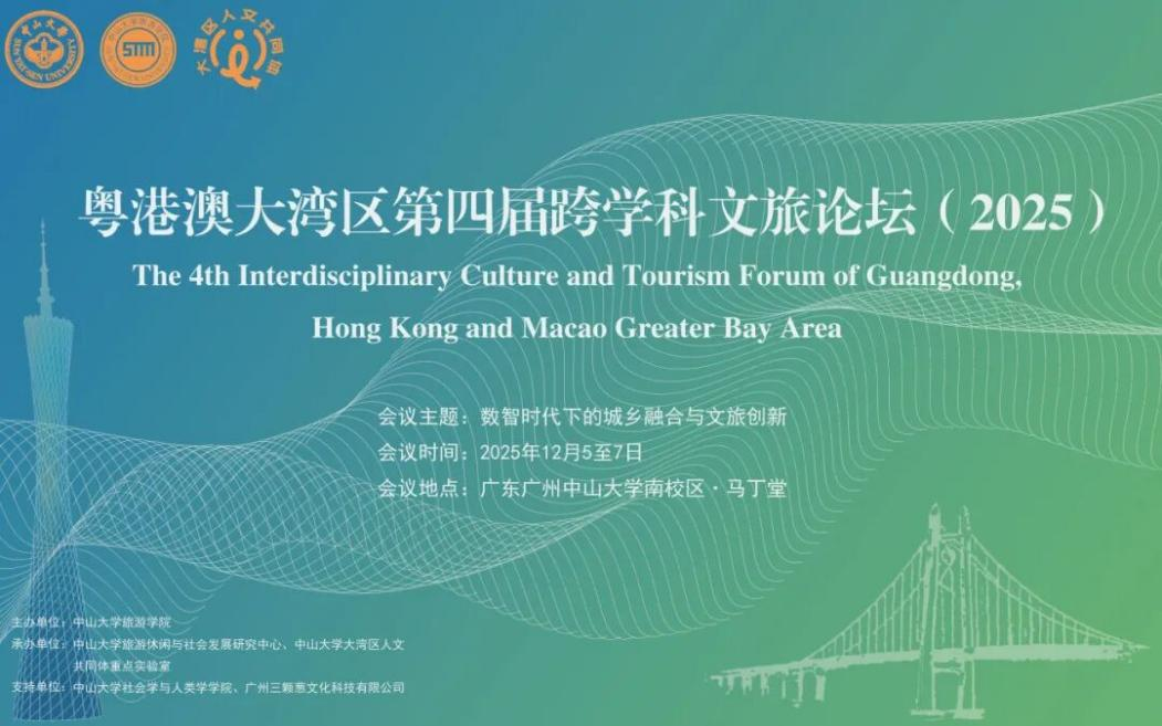 2025年12月6日,“粤港澳大湾区跨学科文旅论坛(2025)”在中山大学南校区马丁堂举行。本次会议由中山大学旅游学院主办,中山大学旅游休闲与社会发展研究中心、中山大学大湾区人文共同体重点实验室承办。会议聚焦“数智时代下的城乡融合与文旅创新”这一核心主题,并围绕“数智湾区与文旅创新”“融湾县域与城乡发展”和“文旅融合与高质量发展”三大议题展开研讨。