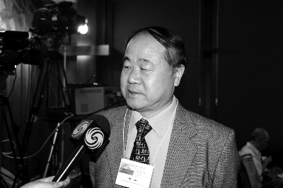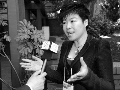于丹在会议期间接受采访