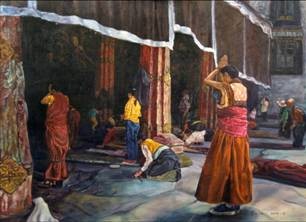 图2逯长江《大昭寺门前的祈祷》(油画) |
