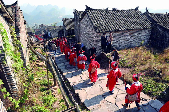 上次举办“大歌堂”还是1957年,那年歌王才十三四岁。家家户户蒸米酒、熏肉、做糍粑,把出嫁的闺女接回家,把地位崇高的舅父请过来,排里杀猪宰鸡。到耍歌堂这天,爆竹铁铳齐鸣,鼓角喧天,歌堂上满是方圆百里来客,人山人海。