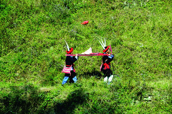 生活方式的改变,让“耍歌堂”的形式变得不那么必须。在很多瑶族老人不知道汉化、全球化这些词语的时候,他们已经身处其中。散学的小学生们身上背着的还是妈妈或祖母缝制的彩色条纹背包,包里装的是全国统一的课本。以后,他们的包也会改变,他们会从山上走下去。但你不知道该替他们高兴还是替什么惋惜。就像你不知道该让他们继续住在山上的瑶寨,还是欣喜他们住在交通生活更便利的新村,即使山上寂静有如天籁、山下的水沟扔满塑料袋。