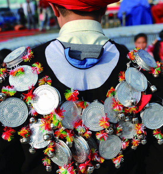 耍歌堂中瑶胞佩戴的精美头饰、配饰、绚丽的服饰,有很强的民族艺术风格。