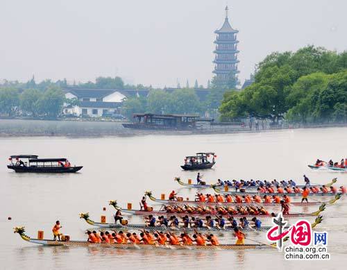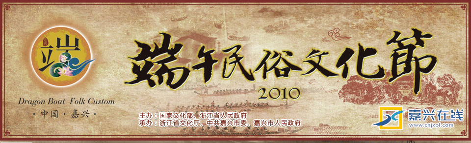 中国网讯 今年6月16日(农历五月初五)是我国端午节入选联合国教科文组织“人类非物质文化遗产代表作名录”后的首个端午节。以此为契机,2010中国 嘉兴端午民俗文化节将于6月13日至17日举行。届时,观众将看到龙舟赛、神龙祭、伍相祭等六项主体活动和端午美食赛、市民裹粽赛、香囊制作赛等十项群众性活动。