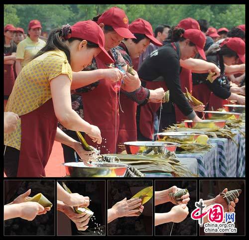 资料图:2009年5月28日端午裹粽大赛(黄新 摄于月河广场)