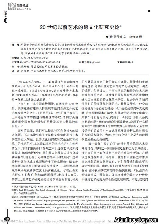 20世纪以前艺术的跨文化研究史论(范丹姆文,李修建译),发表于《民族艺术》2014年第3期。